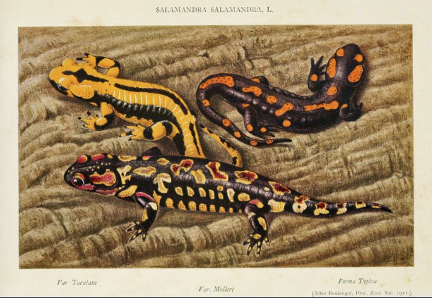 | The frontispiece to The Anatomy of the Salamander is from a paper by E.G. Boulenger. According to Hanken, the chromolithograph is by John Green |